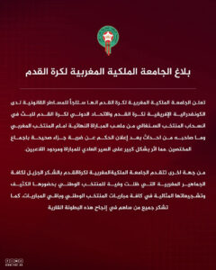 بلاغ الجامعة الملكية المغربية لكرة القدم